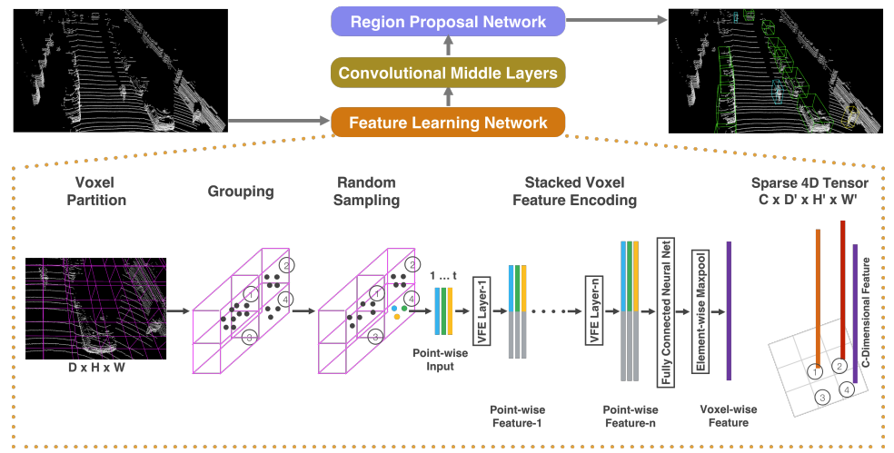 VoxelNet: End-to-End Learning for Point Cloud Based 3D Object Detection