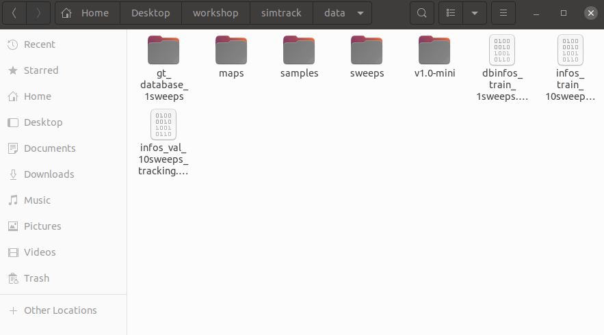 simtrack 폴더 내부에 data폴더를 만들고 nuscenes mini dataset과 Data preparation 결과를 넣었음.